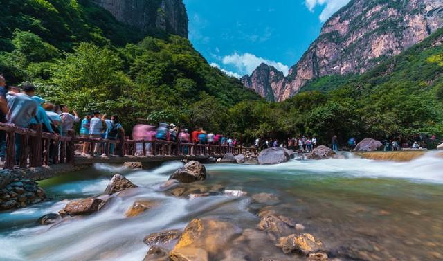 顺着红旗渠往深处走,就到了太行大峡谷。这里的山像是被巨人用斧头劈开的,两边的峭壁直上直下,中间夹着一条湍急的溪流。夏天的时候,瀑布从百米高的崖顶砸下来,水雾能溅到脸上,凉飕飕的。当地人笑着说:“在这儿站一会儿,连防晒霜都不用涂了。”
